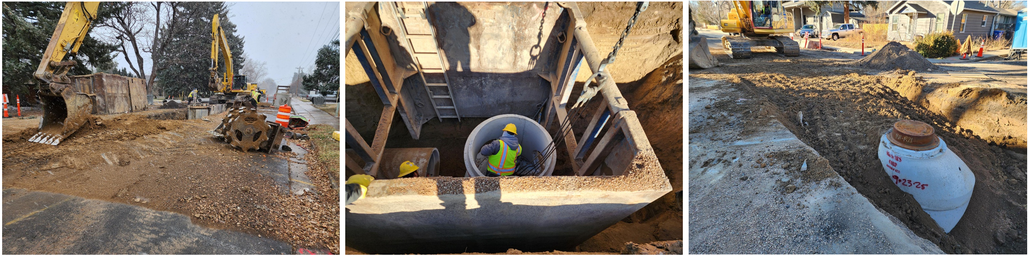 • The pipe crew advanced west past Roosevelt Avenue, reaching Manhole 9 and the next two inlets. Crews will continue installing pipe through the Roosevelt Avenue and 10th Street intersection, then return next week to install the remaining two inlets.