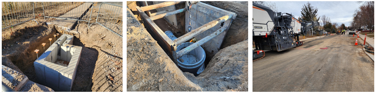 1. The pipe crew installed four new inlets at the intersection of Franklin Avenue and 10th Street. Two were challenging due to existing utilities being in the way, but the crew successfully completed all installations.