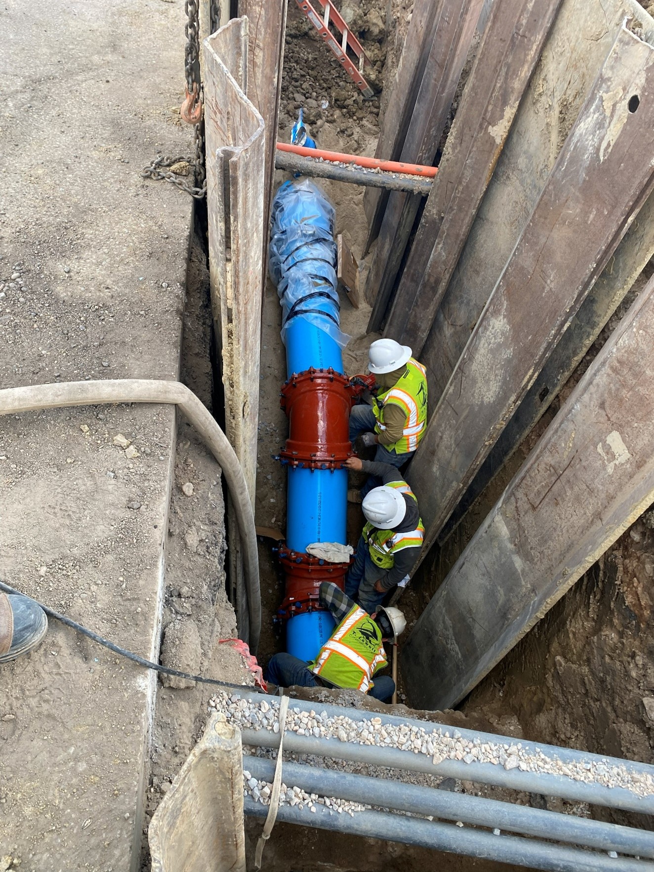 - Another crew installed 16-inch water line from 28th Street south to Lake Drive, then east across N. Taft Avenue within Lake Drive. This will connect to the existing water line near the Thompson Ambulance facility after disinfection and pressure testing.