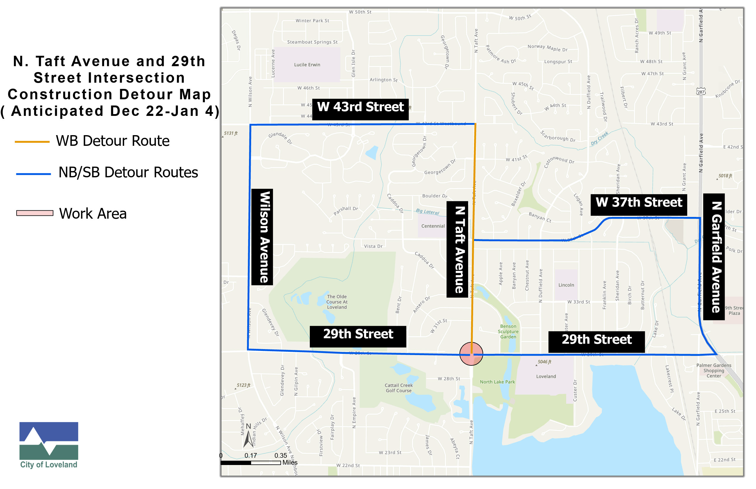 The US 34 and Taft Avenue Intersection Improvement Project recently concluded successfully, enhancing traffic flow, reducing congestion and making one of Loveland’s busiest intersections safer and easier to travel for all users. Improvements included new bike lanes, wider sidewalks and ADA-compliant features that improve safety and accessibility for drivers, cyclists and pedestrians alike.